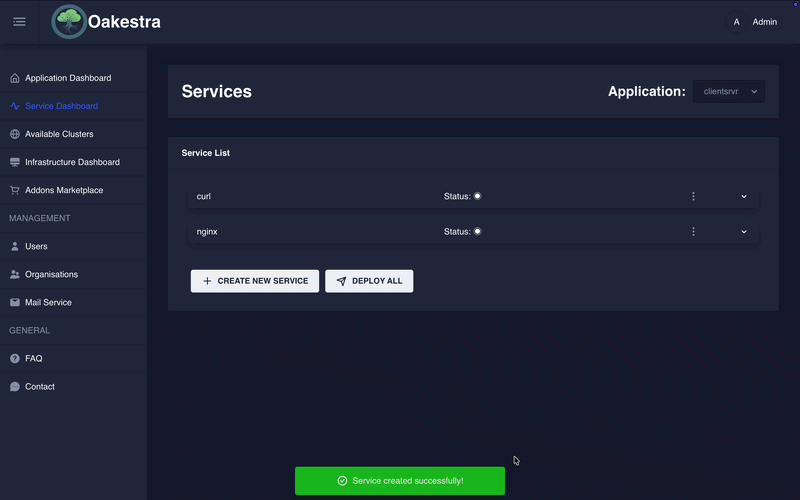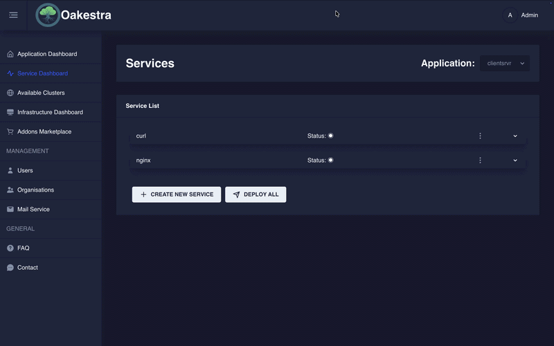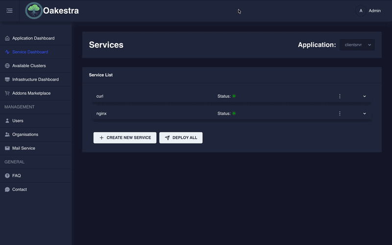 When you start Oakestra using the standard installation scripts (as described in the Create Your First Oakestra Orchestrator section), the dashboard is automatically deployed along with the other Oakestra components.