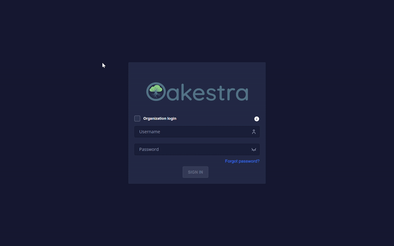 To log in to an organization, check the Organization login box and enter the organization name. If the box is not checked or the organization